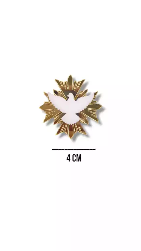 APLIQUE EM ACRÍLICO ESPELHADO. RAIOS ACRÍLICO DOURADO POMBO ACRÍLICO BRANCO TAMANHO