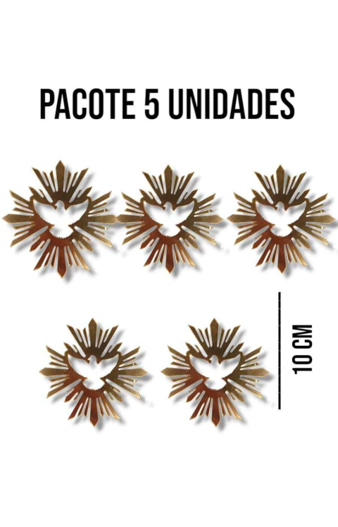 🔹 PACOTE COM: 5 UNIDADES🔹 TAMANHO: 11CM🔹 MATERIAL: ACRÍLICO DOURADO ESPELHADO🔹 RAIO VAZADO